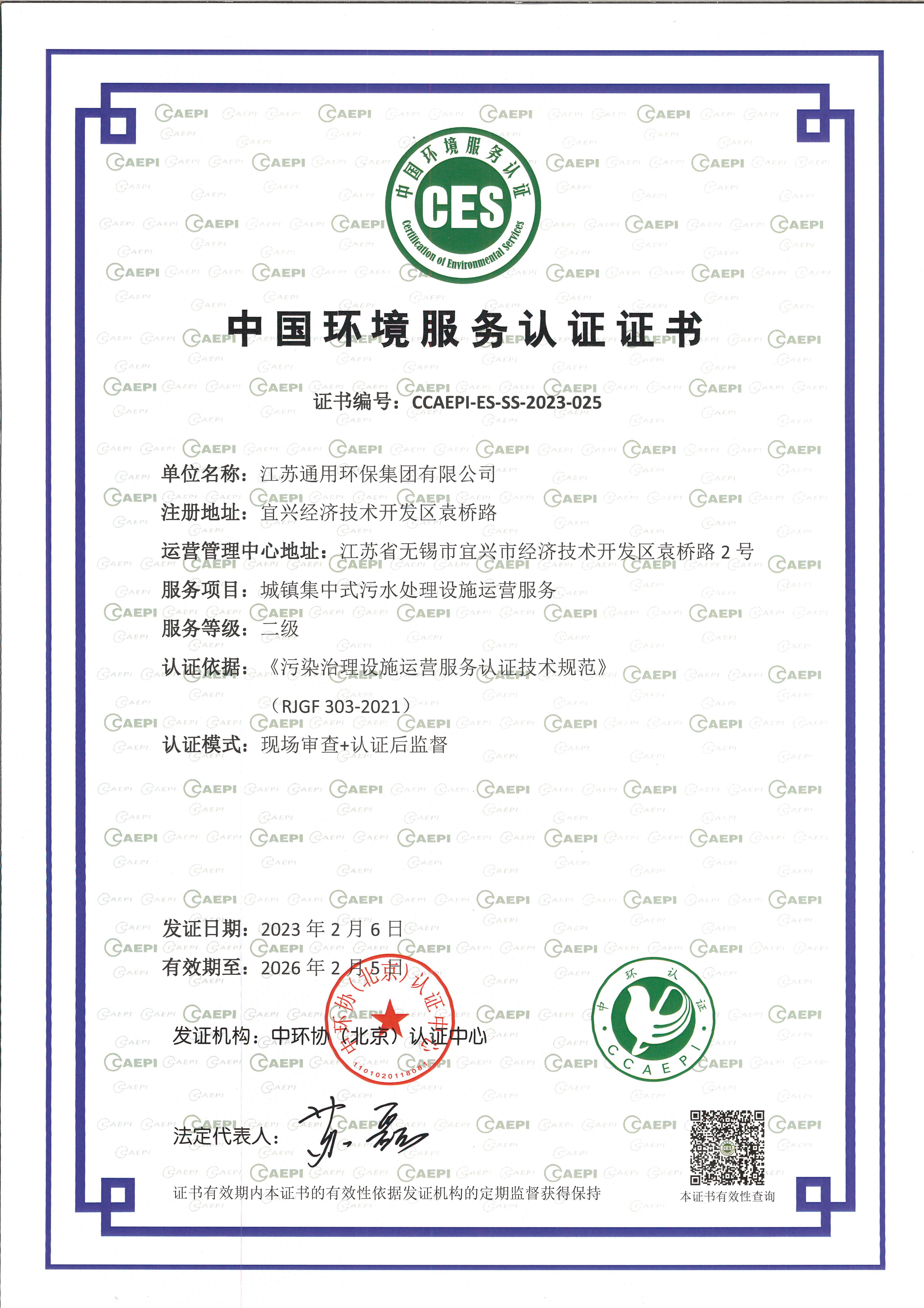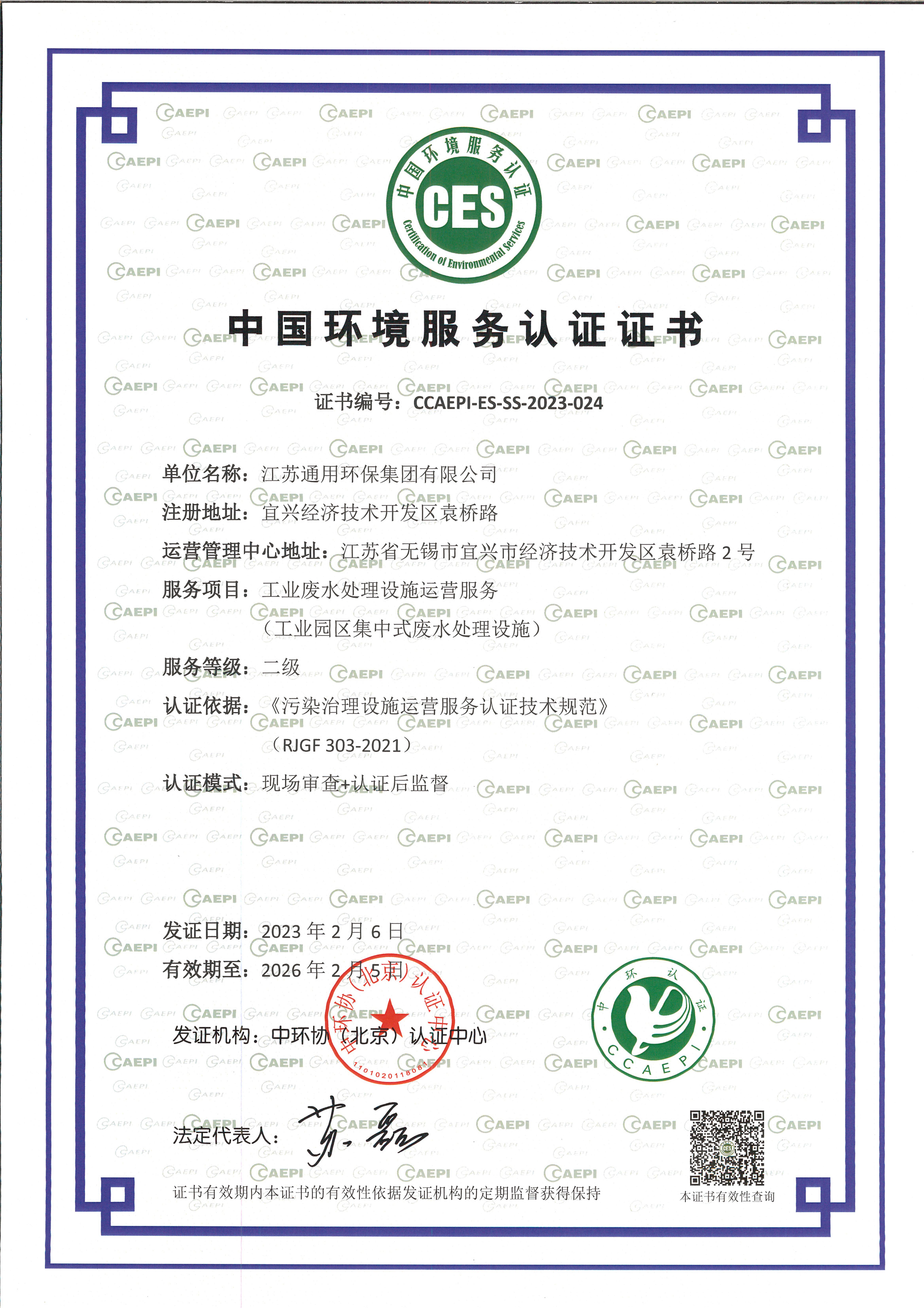 工业废水处理设施运营服务证书