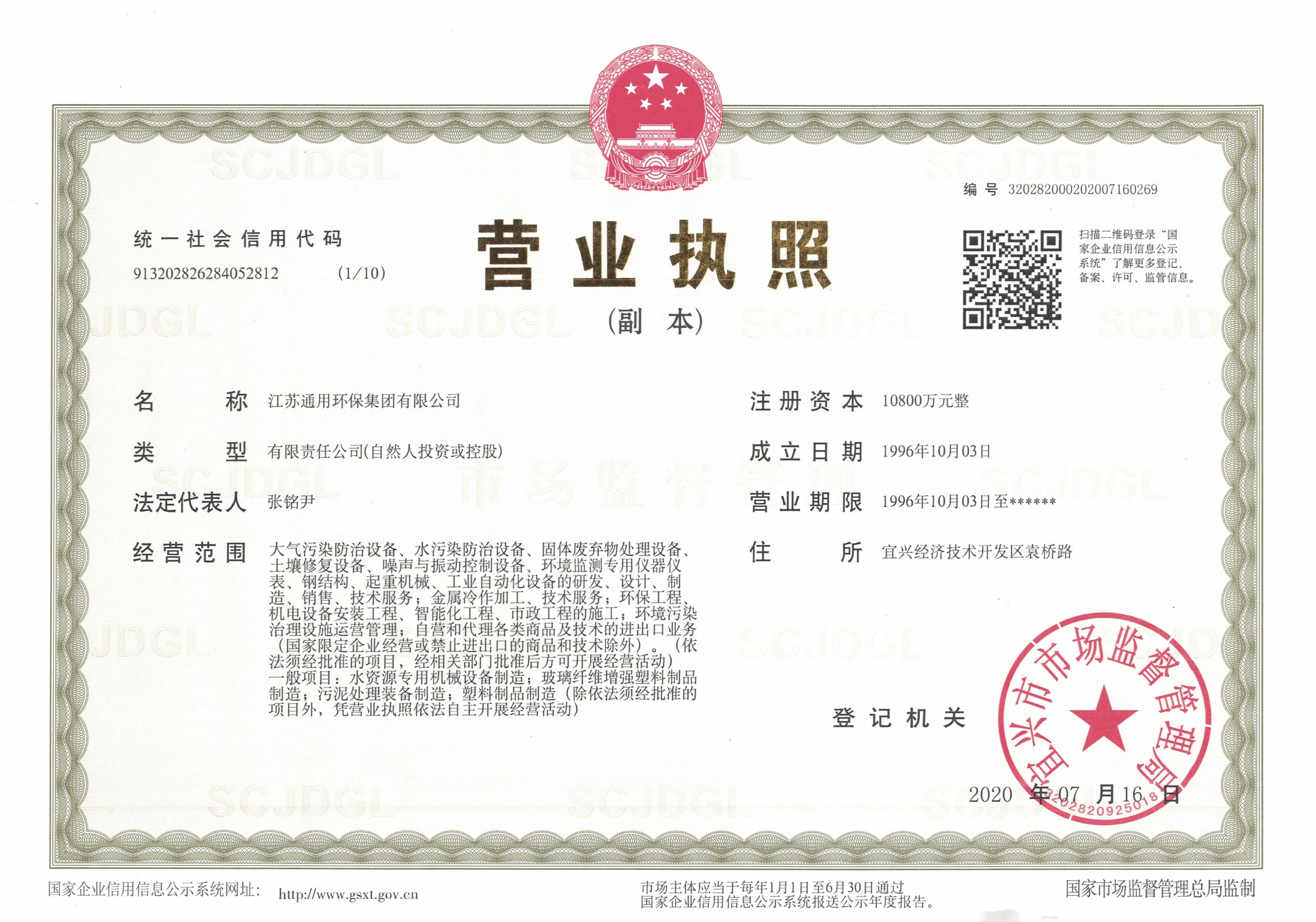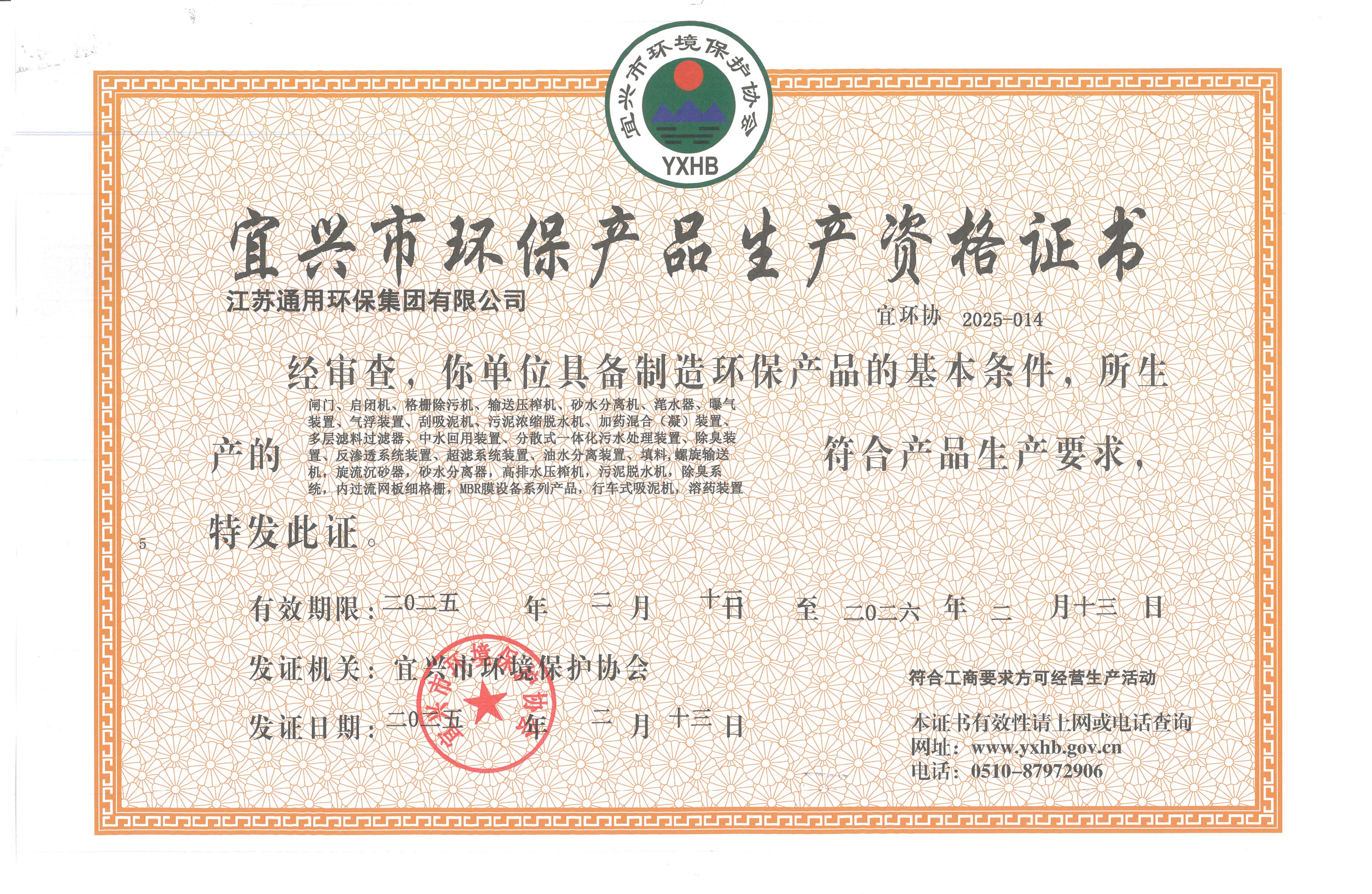 宜兴市环保产品生产资格证书