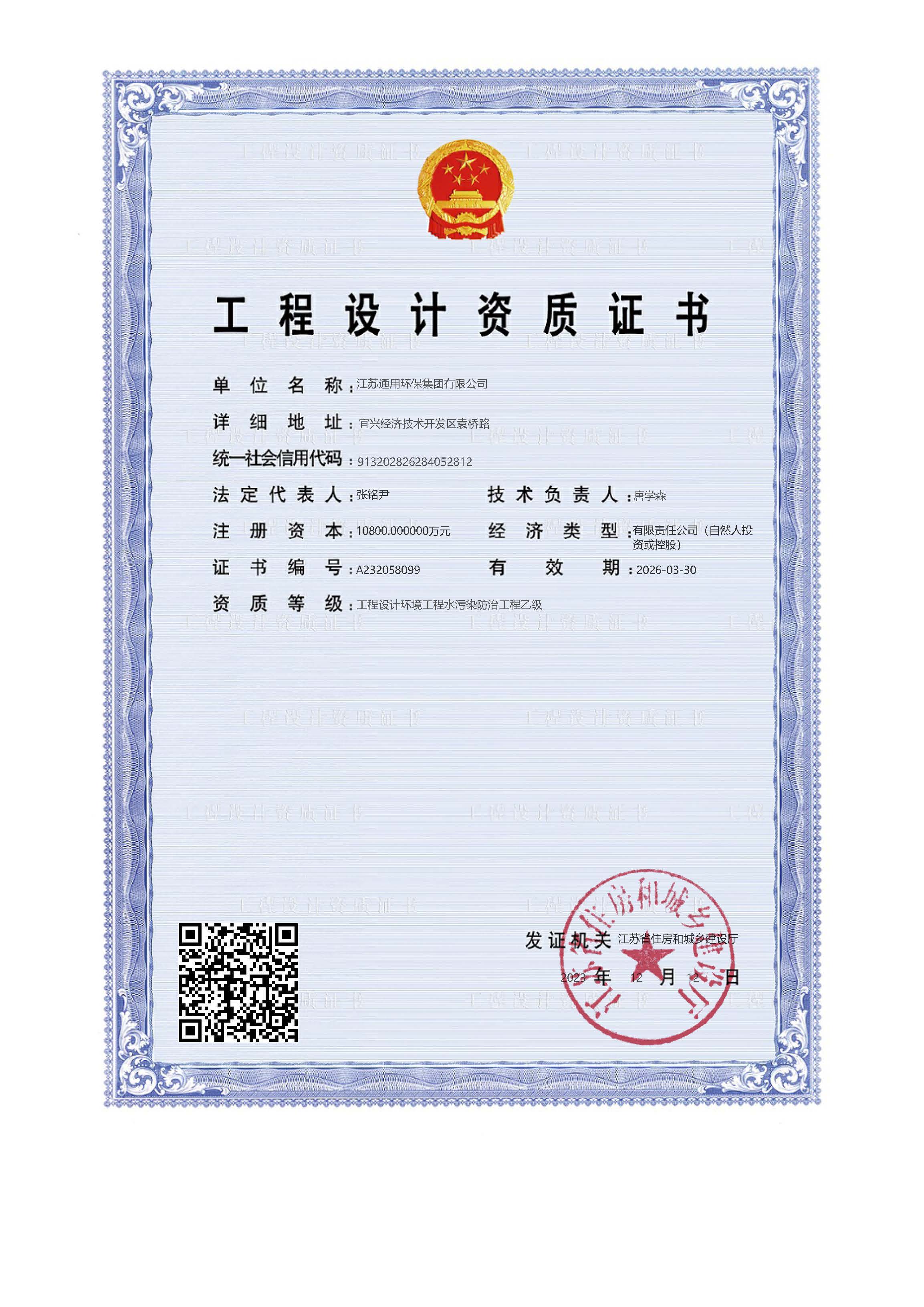 工程设计资质证书