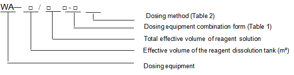 The WA dosing equipment is equipped with a fiberglass reinforced plastic reagent dissolution tank, a set of electric mixer, two reagent solution tanks, a dosing device, piping, steel platform, ladder, etc. as a whole.